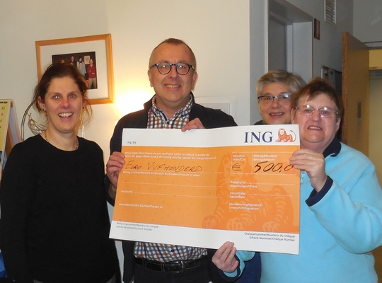 De verkoop leverde ons – ondanks het slechte weer – een mooie opbrengst van 400 euro op. Dat bedrag verhoogden we tot 500 euro en schonken we net als vorig jaar aan vzw De Berken.